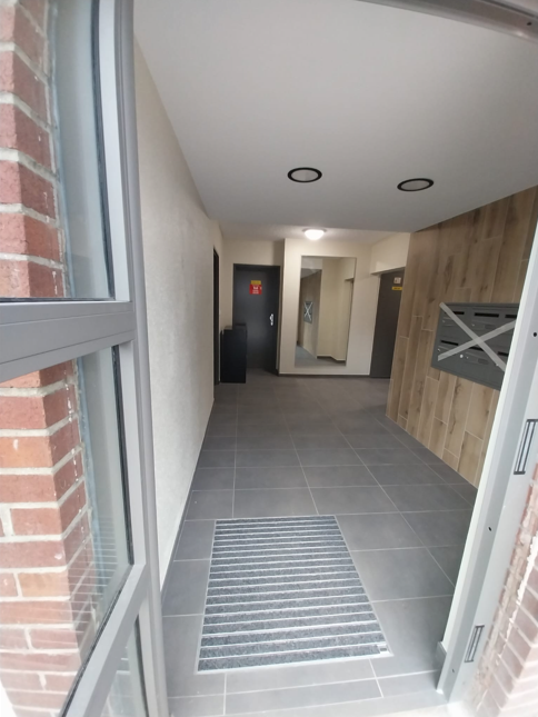 Réhabilitation complète des parties communes et des logements : Entrée de l’immeuble, cuisines, salles de bains et réseaux de plomberie rénovés.