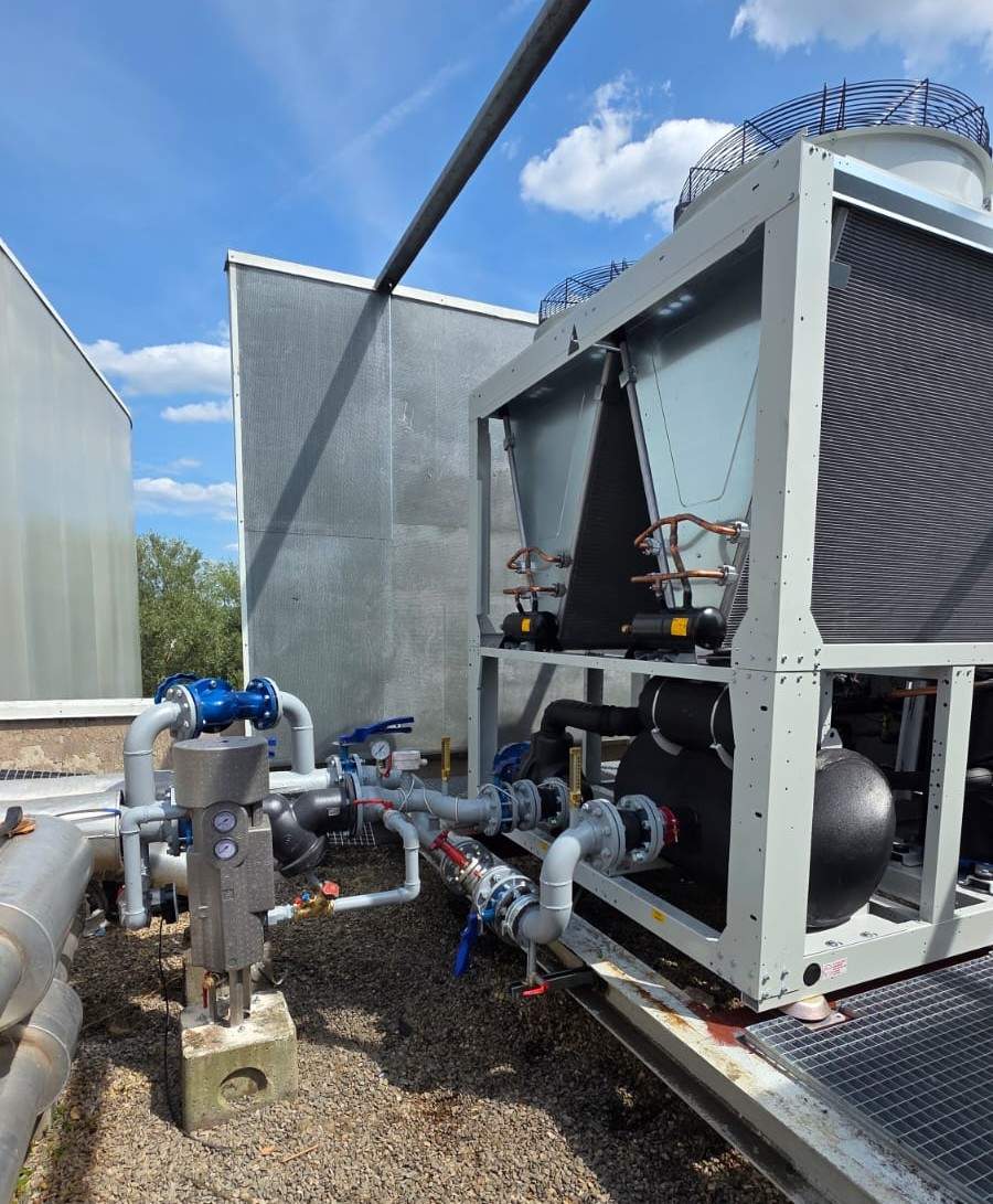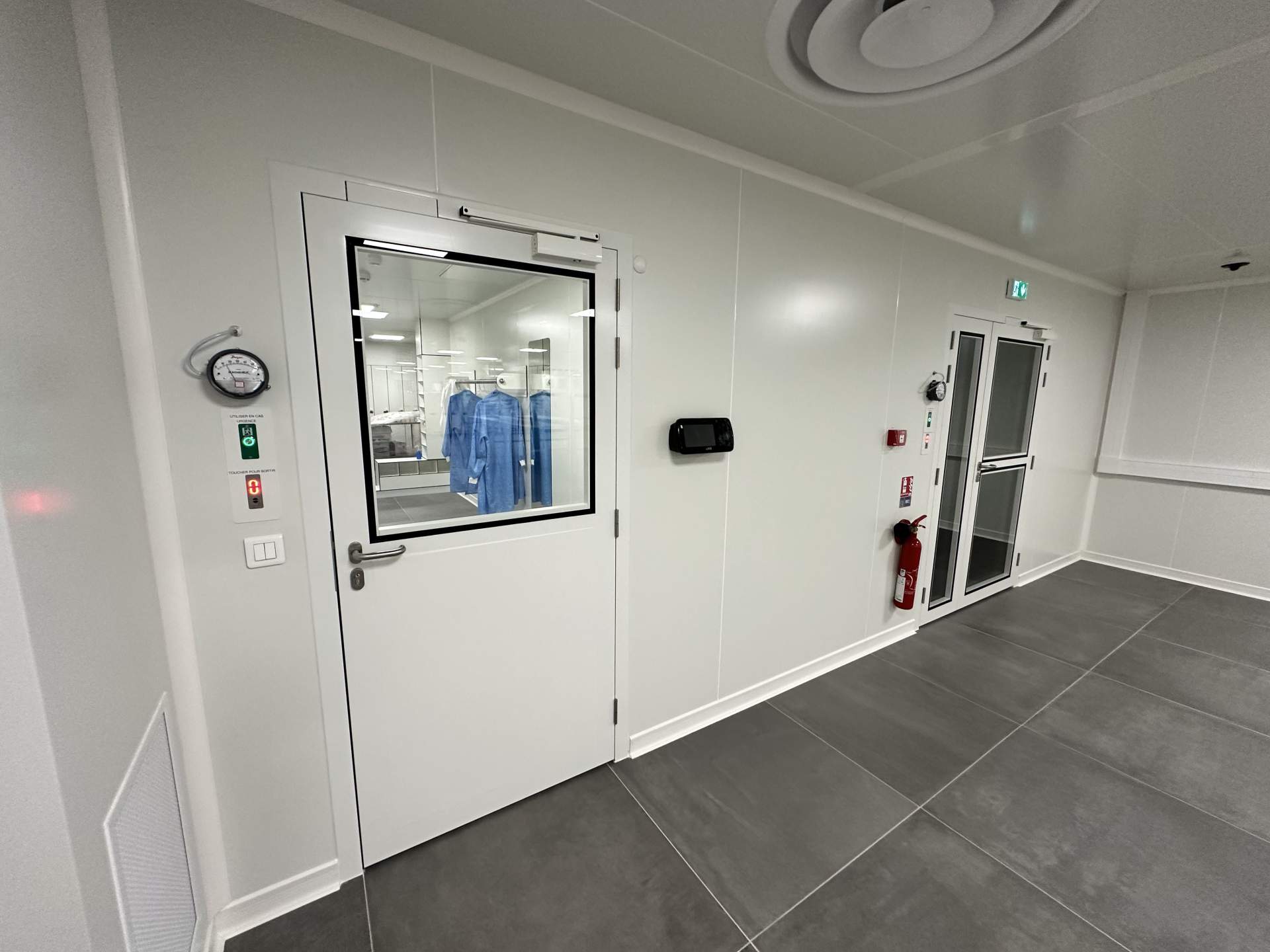 Réalisation clé en main d’un laboratoire ISO 7 de 550 m² : cloisons et plafonds en tôle, menuiseries spécifiques, équipements CVC, électricité, pompe à chaleur, études techniques et qualifications.